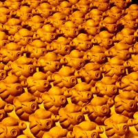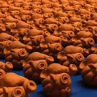Als Antwort auf das gegenwärtige Weltgeschehen schicke ich heute eine Armee von Terrakotta Soldaten in der Gestalt von Ganeshas auf das Schlachtfeld.