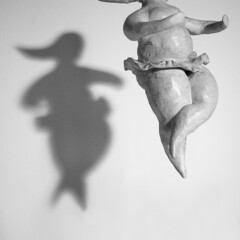 Der archaische Bezug zur Erde wird durch den Schattenwurf an der Wand aufgehoben.