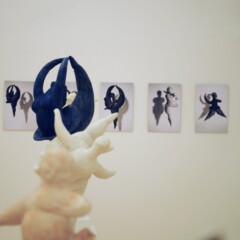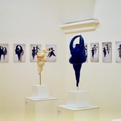 Verschiedene Lichtquellen fallen auf das teilweise glatte, raue, spröde Material der Eisprinzessinnen-Skulpturen und erzeugen Kontraste, ein hohes Maß an Dynamik und gleichzeitig eine spielerische Schwerelosigkeit.
