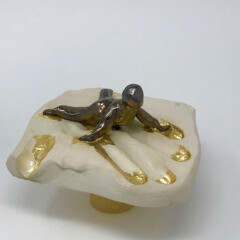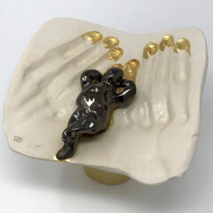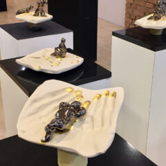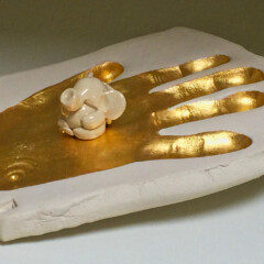 Mit einem Schmunzeln präsentieren meine Hände diese verschiedensten Momente meiner kreativen Welt, die Teil meiner Person sind, und halten sie fest. Hände, die mir wahre Freude bereiten, die das Formlose in Form verwandeln, die das Kind in mir mit Zärtlichkeit und Fürsorge halten, die Kraft und Unabhängigkeit ausdrücken. Meine Finger formen spielerisch kleine Episoden aus meinem künstlerischen Alltag in den Ton.