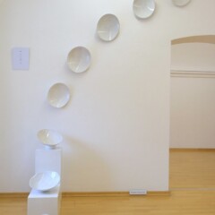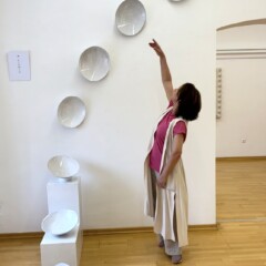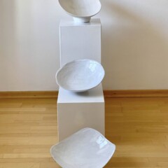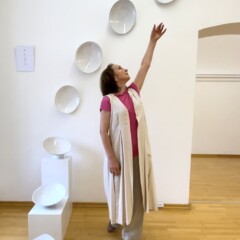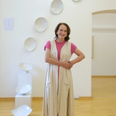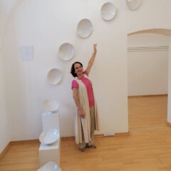 Brigitte Saugstad wird der Adolf-Peschek-Publikumspreis 2023 von Museumsdirektor Thomas Pulle und Künstlerobmann Ernest Kienzl überreicht für ihre Installation Up bei der Jahresausstellung des St.Pöltner Künstlerbundes im Stadtmuseum St.Pölten.