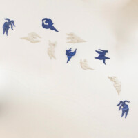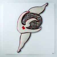 Mural, white porcelain stoneware, glazed, on wood,