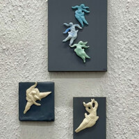Mural, white porcelain stoneware, glazed,