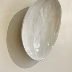 Ceramic bowls, which are glazed in a slightly irregular white shiny glaze, become instrumental mirrors of light, depending on the light source and the observer's point of view.